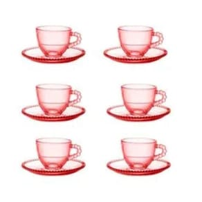 Jodo de xícaras de chá pearl rosa 12 peças - dimensões da peça: - xícaras: 12 x 9,6 x 6,5cm - pires: 13,7 x 13,7 x 1,8cm - dimensões da embalagem: 46,5 x 15,5 x 9,5cm - quantidade master: 6 peças - dimensões master: 47 x 34 x 31cm - material: vidro - cor: rosa - tipo de embalagem: caixa litografada - marca: haskraft - origem: china - capacidade: 230ml - espessura da borda: - xícaras: 3mm - pires: 5mm - contém: - 6 xícaras - 6 pires - características: - jogo de xícaras feito em vidro com design moderno e arranjado, traz elegância para seu ambiente. Prático de usar, é ideal para o seu dia a dia. - atenção: - manter fora do alcance das crianças, esse produto não é um brinquedo. - cuidados: - use somente esponja macia e sabão neutro. - evite o uso de produtos abrasivos. - enxágue com água em abundância. - para secar, utilize um pano seco e macio. - evite quedas para não danificar o produto.