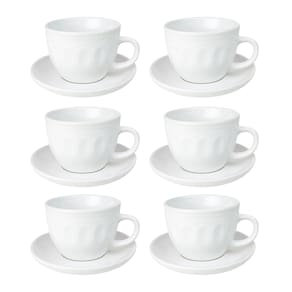 Sirva seu café ou chá com charme e elegância com este jogo de xícaras com pires de cerâmica branca, composto por 12 peças (6 xícaras e 6 pires). Cada xícara tem capacidade de 210ml, ideal para café ou chá, tornando seus momentos ainda mais especiais.