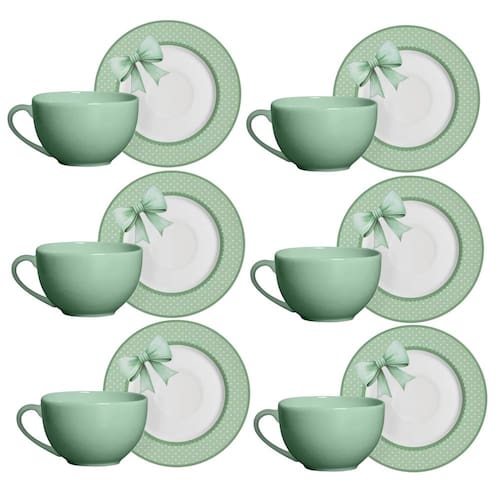 O Jogo de Xícaras de Chá Laços de Páscoa Verde , da Alleanza combina sofisticação e delicadeza para compor sua mesa posta. Produzido em cerâmica feldspática, o conjunto de chá é composto por 12 peças, 6 xícaras de 250 ml e 6 pires, que podem ser levados ao micro-ondas e à máquina de lavar louças.