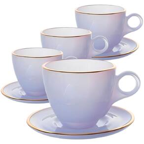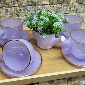 Informações Adicionais: - Validade: Indeterminada - Capacidade: 170ml - Tamanho Aproximado da Xícara: 11,5 x 8cm Ø - Tamanho Aproximado do Pires: 12 x 12cm Ø - Peso Aproximado de Cada Produto: 0,394G - Tipo de Produto: Jogo de Xícaras para Chá Matte 170ml - Cor: Lilás Borda Dourada - Composição: Vidro Cristal - Pacote Contém: 4 Xícaras - Pacote Contém: 4 Pires - Garantia: 90 dias contra defeito de fabricação - Observação: As cores dos produtos podem sofrer variações em função da características do monitor e do ambiente durante a visualização.
