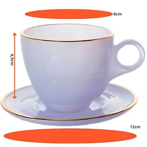 - Contém: • 4 Xícaras: -Altura: 6,5 cm -Diâmetro: 8 cm -Capacidade: 170ml