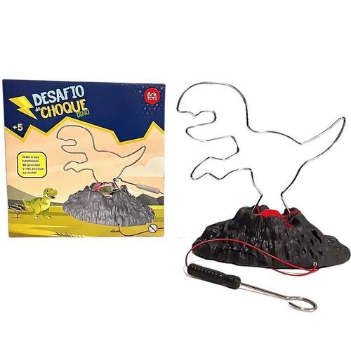 Jogo Desafio Do Choque Dino - Ark Toys O Desafio do Choque dino da Ark Toys é um jogo divertido e emocionante, onde as crianças enfrentam obstáculos e tentam passar por desafios sem ?sofrer o choque?. Com um design incrível de dinossauro, ele estimula a concentração, coordenação motora e paciência, já que os jogadores precisam ser rápidos e precisos para evitar o erro. Vale ressaltar que, apesar do nome, o jogo não dá choque de verdade, oferecendo apenas uma experiência de diversão e emoção segura. É uma ótima opção para divertir a criançada, promover competitividade saudável e incentivar o desenvolvimento de habilidades de forma leve e divertida! Código: 105619 Dimensões aprox. da embalagem em cm: 6,5x22x22 Peso liq. Aproximado do produto na embalagem: 220g Referência do Modelo: AKT4301 Certificado Inmetro: 004159/2022 Conteúdo da Embalagem: 01 Base em Formato de dinossauro. Composição/material: Plástico (PVC), Metal, Componentes Eletrônicos. Idade recomendada: a partir de 5 anos Garantia: 90 dias contra de fabricação pelo fabricante Imagens meramente ilustrativas. As cores e tonalidades podem variar Gênero - Meninos Idade - 5 anos 6 anos 7 anos Tipo - Estratégia Habilidade Jogo Pedagógico