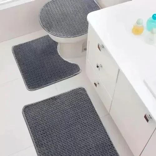 Contém: 03 Peças Cor: --Zinco 1 Tapete de Banheiro 40 x 57 cm 1 Tapete Contorno do Vaso 40 x 40 cm 1 Tampo com elástico para Vaso 40 x 46 cm Foto ilustrativa , verificar a cor na descrição. Composição: Superfície: 100% Poliéster Base: 100% Látex Ean: 7896176729493