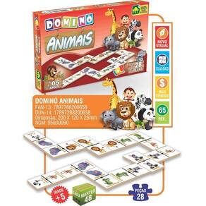 Jogo Dominó Animais Mad. 28 Pçs Ref 65 Jogo dominó animais mad. 28 pçs ref 65 - Características Gerais do Produto: - Produto certificado: CE-BRI/BRICS 00244-15 NM 300/2002 OCP 0098 - Avisos: As cores podem variar entre as imagens mostradas acima e o produto. Imagem meramente ilustrativa. - Dimensões: comprimento x largura x altura: 20,5 x 12,5 x 2,5 cm Garantia: - Sem Garantia