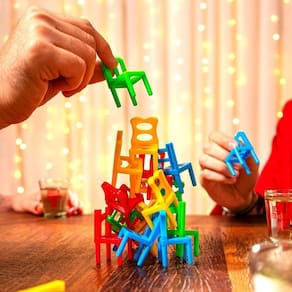 Perfeito para jogar com os amigos, ele traz um desafio que parece uma tarefa simples: empilhar todas as cadeiras sem derrubar nenhuma, porém, cada jogador deverá utilizar apenas uma mão!