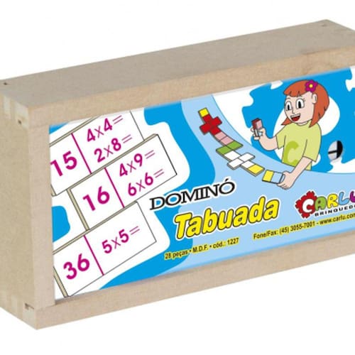 Detalhes : Confeccionado em M.D.F. 28 peças de 7 x 3,5 cm, pintada e serigrafada com tinta ultravioleta atóxica em uma das faces. Embalagem: Caixa de madeira com tampa serigrafada medindo 17 x 9,5 x 4 cm. Lacrada com película de P.V.C. encolhível. Idade: A partir de 3 anos