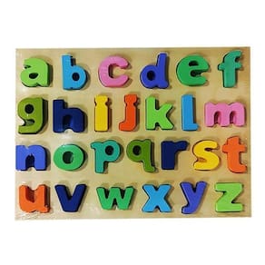 O kit inclui também duas placas com recortes nas formas das letras, onde as crianças podem encaixar as letras correspondentes, incentivando a coordenação motora fina e a associação entre as formas das letras maiúsculas e minúsculas. Além disso, as peças são pintadas com cores vibrantes e alegres, tornando o aprendizado ainda mais divertido.