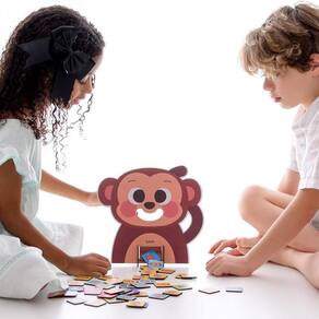 Embarque em uma aventura saudável com nosso jogo Alimente bem o Macaquinho. Explore uma variedade de fichas de alimentos saudáveis e não tão saudáveis assim e observe como o macaquinho reage a cada uma delas. Feito de madeira MDF reflorestada. Contém um macaquinho e 48 fichas de alimentos saudáveis e não saudáveis. Indicado para crianças a partir de 2 anos. Recomenda-se a interação de um adulto. Utilizamos materiais seguros, duráveis e ecológicos.