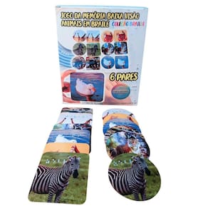 Desenvolva habilidades cognitivas e sensoriais com o Jogo Educativo Braille Baixa Visão Tema Animais 6 Pares, ideal para crianças e adultos com baixa visão. Este jogo da memória exclusivo combina imagens nítidas de animais com a escrita em Braille, facilitando a aprendizagem tátil e visual de forma lúdica e inclusiva. Estimule a memória, a concentração e o vocabulário enquanto promove a inclusão social. Um recurso essencial para educadores e famílias que buscam educação acessível e divertida.