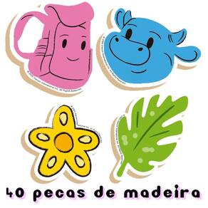 Conteúdo da Embalagem: 40 peças de madeira e 02 pinças de plástico