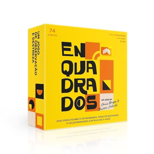 Jogo Enquadrados - Copag O mais novo lancamento da linha de Games da Copag vai quebrar a cabeca de ate 4 jogadores, que terao que replicar de forma identica as obras de arte que sumiram de um museu. Cada jogador abre uma Carta Quadro e tem 6 cartas de replica a mao para reproduzi-la. Vence o mais rapido a cumprir a missao - mas cuidado! Somente as replicas perfeitas sao validas, e quem errar perde pontos. Para quem der bobeira, a pressa pode ser inimiga da perfeicao. O interessante e que ha diferentes niveis de dificuldade e cada um pode escolher o seu. Quanto mais dificil, maior a pontuacao que se pode alcancar! Enquadrados conta com 3 formas diferentes de jogar e atende desde as familias e os jogadores iniciantes ate os mais experientes! Idade recomendada: A partir de 14 anos. Selo Inmetro: CE-BRI/INNAC-00276-01A - NM300/2002 - OCP 0061 Ean: 7896192338341