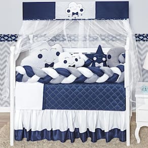 Jogo enxoval de berço duas tranças cabeceira nuvem marinho 12p