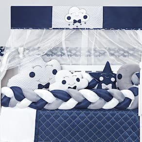 Jogo Enxoval De Berço Duas Tranças Cabeceira Nuvem Marinho