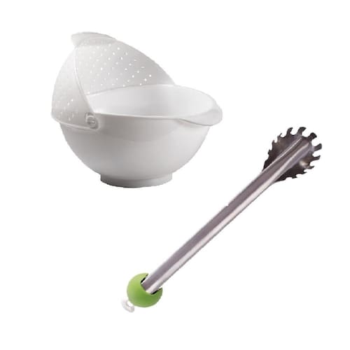 O pegador de massas da Chef'n é um dos objetos mais práticos para o dia-a-dia da cozinha. Um dos braços da pinça é uma colher e graças a esta construção se torna prático para utilização em espaguete e outras massas. Na junta, os alicates têm cabo em forma de bola para um aperto confortável e são equipados com um mecanismo de travamento fácil de operar mesmo com uma mão.