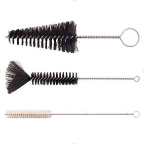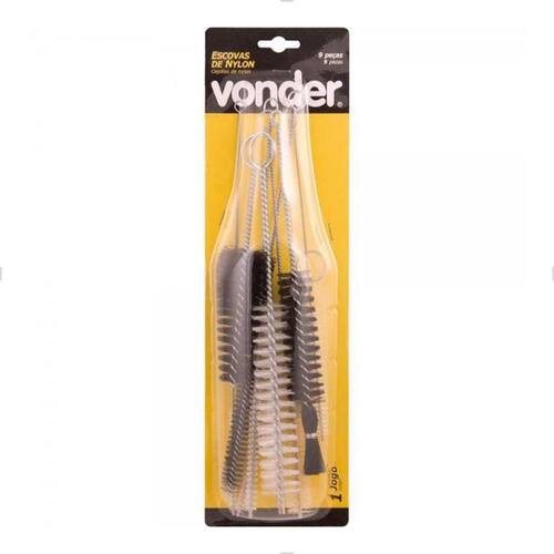 Jogo com 9 escovas tubulares manuais. Não danifica a peça sobre a qual a escova está sendo aplicada. Indicado para uso manual em limpezas internas de tubulações, peças cilíndricas, entre outras.