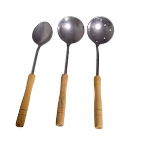 Trazemos para você este kit com 3 utensílios completo para sua cozinha. Você terá Concha, , Colher e Escumadeira em um único kit. Com design rústico, é produzido em alumínio fundido, não enferruja. Não transmite odor aos alimentos, é ideal para cozinhas de uso profissionais. Marca: Não Informado