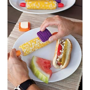 Este utensilio da Outset marca da renomada Fox Run, foi projetado para aplicar manteiga de maneira completa e suave em qualquer espiga de milho!