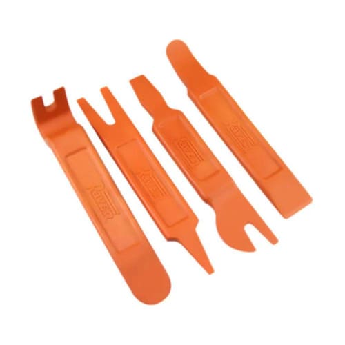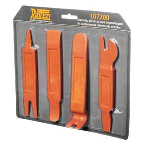 Jogo Espatulas Plásticas Para Desmontar Acabamentos - RAVEN Conjunto com 4 espátulas plásticas para desmontagem de acabamentos internos. Indicação:- Desmontagem de acabamentos internos, molduras, difusores de ar e ornamentos, painéis internos de portas entre outros, sem danificar os mesmos. Características:- 4 espátulas plásticas;- Resistente e durável. Recomendações:- Use óculos de segurança;- Não martele as espátulas;- Não usar com acabamentos metálicos;- Evite contato com solventes. Marca: RAVENRef: 107200Garantia: 6 meses. Imagens meramente ilustrativas