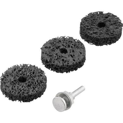 Jogo esponja abrasiva polimento medio c/haste 4pcs vd 1250004001 Conteúdo da embalagem: 1 jogo de esponjas abrasivas, composto por 4 peças, sendo: 3 esponjas abrasivas e 1 haste adaptadora
