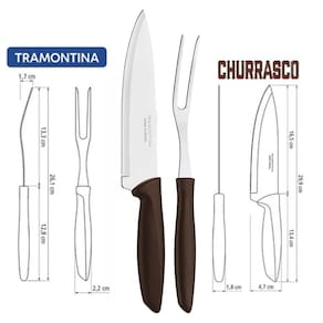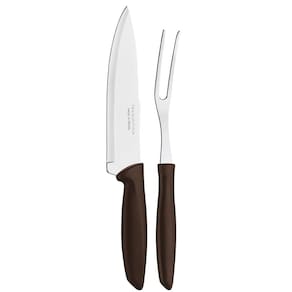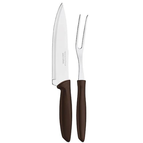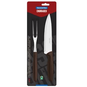 Jogo Trinchante Tramontina 2 Peças Faca Churrasco 7' e Garfo Plenus com Lâminas em Aço Inox e Cabos de Polipropileno Marrom.