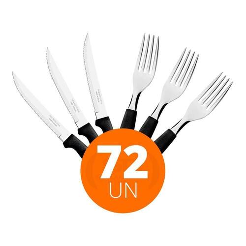 OBS: Veja na descrição os itens que acompanham o jogo. COMPONENTES DO KIT: 36 Faca para Churrasco Ipanema com Lâmina em Aço Inox e Cabo de Polipropileno Preto 5 - Tramontina 23360405 36 Garfo de Mesa Ipanema com Lâmina em Aço Inox e Cabo de Polipropileno Preto - Tramontina 23362400 Faca para Churrasco Ipanema com Lâmina em Aço Inox e Cabo de Polipropileno Preto 5 - Tramontina 23360405 : 90 dias para vícios ou defeitos de fabricação - Ideal para Restaurante, Lancheria, Padaria, Linha Doméstica, Residência, Gourmet; - A lâmina de aço inox tem maior durabilidade do fio devido ao tratamento térmico. - O cabo de polipropileno possui maior resistência e durabilidade. - Pode ir à máquina de lavar louças facilitando seu dia a dia. - Peso Líquido: 0,023 kg. - Peso Bruto: 0,025 kg. - Dimensões Embalagem : 11cm A x 20cm L x 21,3cm P. - Dimensões Produto 12cm A x 22cm L x 22cm P. Garfo de Mesa Ipanema com Lâmina em Aço Inox e Cabo de Polipropileno Preto - Tramontina 23362400 : 90 dias para vícios ou defeitos de fabricação - Ideal para Restaurante, Lancheria, Padaria, Linha Doméstica, Residência, Gourmet; - O cabo de polipropileno possui maior resistência e durabilidade. - Pode ir à máquina de lavar louças facilitando seu dia a dia. - Peso Líquido: 0,025 kg. - Peso Bruto: 0,027 kg. - Dimensões Embalagem: 16cm A x 24cm L x 19cm P. - Dimensões Produto: 17cm A x 7,5cm L x 19cm P . Marca: Não Informado Ean: 7890100016925