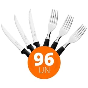 OBS: Veja na descrição os itens que acompanham o jogo. COMPONENTES DO KIT: 48 Faca para Churrasco Ipanema com Lâmina em Aço Inox e Cabo de Polipropileno Preto 5 - Tramontina 23360405 48 Garfo de Mesa Ipanema com Lâmina em Aço Inox e Cabo de Polipropileno Preto - Tramontina 23362400 Faca para Churrasco Ipanema com Lâmina em Aço Inox e Cabo de Polipropileno Preto 5 - Tramontina 23360405 : 90 dias para vícios ou defeitos de fabricação - Ideal para Restaurante, Lancheria, Padaria, Linha Doméstica, Residência, Gourmet; - A lâmina de aço inox tem maior durabilidade do fio devido ao tratamento térmico. - O cabo de polipropileno possui maior resistência e durabilidade. - Pode ir à máquina de lavar louças facilitando seu dia a dia. - Peso Líquido: 0,023 kg. - Peso Bruto: 0,025 kg. - Dimensões Embalagem : 11cm A x 20cm L x 21,3cm P. - Dimensões Produto 12cm A x 22cm L x 22cm P. Garfo de Mesa Ipanema com Lâmina em Aço Inox e Cabo de Polipropileno Preto - Tramontina 23362400 : 90 dias para vícios ou defeitos de fabricação - Ideal para Restaurante, Lancheria, Padaria, Linha Doméstica, Residência, Gourmet; - O cabo de polipropileno possui maior resistência e durabilidade. - Pode ir à máquina de lavar louças facilitando seu dia a dia. - Peso Líquido: 0,025 kg. - Peso Bruto: 0,027 kg. - Dimensões Embalagem: 16cm A x 24cm L x 19cm P. - Dimensões Produto: 17cm A x 7,5cm L x 19cm P . Marca: Não Informado