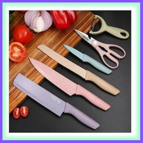 ?? Kit Conjunto de facas em tom pastel revestido de mármoreEleve a sua experiência culinária com o Jogo de Facas de Cozinha Churrasco Gourmet. Este kit colorido contém 4 facas de aço inoxidável de alta qualidade, uma tesoura multiuso e um descascador, todos projetados para proporcionar precisão e durabilidade. Com lâminas afiadas e cabos coloridos, este conjunto oferece estilo e funcionalidade em igual medida. Perfeito para churrascos e uso diário na cozinha, este jogo de facas versátil atende a todas as suas necessidades de corte e preparo de alimentos. Adicione um toque de cor e eficiência à sua cozinha com este kit completo de facas e acessórios coloridos.Contém:- 01 Unidade• Características do ProdutoO conjunto inclui:1 x Faca de Chef 81 x Faca de Pão 81 x Cutelo pequeno 81 x Faca de Descascar 3,51 x Descascador de Cerâmica1 x Tesoura