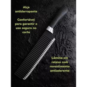 Este conjunto inclui seis peças com revestimento antiaderente, lâminas afiadas e design de ângulo com cabo ergonômico para garantir maior precisão e desempenho. As peças são feitas de aço inox de alta qualidade e durabilidade. As lâminas foram selecionadas para usos específicos, tornando este conjunto adequado para todos os preparativos na sua cozinha.