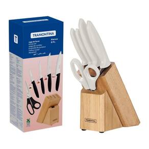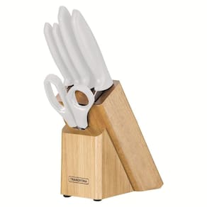 Jogo De Facas Cozinha Cepo Cabo Branco 6 Pçs Plenus Tramontina