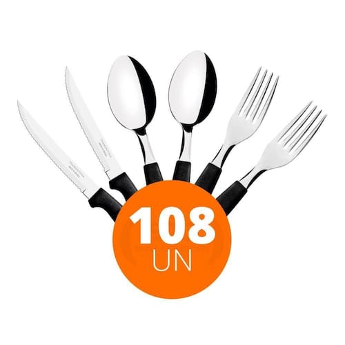 Componentes do KIT: - 36 Faca para Churrasco Ipanema com Lâmina em Aço Inox e Cabo de Polipropileno Preto 5 - Tramontina 23360405 - 36 Garfo de Mesa Ipanema com Lâmina em Aço Inox e Cabo de Polipropileno Preto - Tramontina 23362400 - 36 Colher de Mesa Tramontina Ipanema com Lâmina em Aço Inox e Cabo de Polipropileno Preto 23363400 - : 90 dias para vícios ou defeitos de fabricação - Ideal para Restaurante, Lancheria, Padaria, Linha Doméstica, Residência, Gourmet; - Seu cabo na cor preta é feito em polipropileno.; - Pode ir à máquina de lavar louças. - A lâmina de aço inox; Faca para Churrasco Ipanema com Lâmina em Aço Inox e Cabo de Polipropileno Preto 5 - Tramontina 23360405 - Peso Líquido: 0,023 kg. - Peso Bruto: 0,025 kg. - Dimensões Embalagem : 11cm A x 20cm L x 21,3cm P. - Dimensões Produto 12cm A x 22cm L x 22cm P. Garfo de Mesa Ipanema com Lâmina em Aço Inox e Cabo de Polipropileno Preto - Tramontina 23362400 - Peso Líquido: 0,025 kg. - Peso Bruto: 0,027 kg. - Dimensões Embalagem: 16cm A x 24cm L x 19cm P. - Dimensões Produto: 17cm A x 7,5cm L x 19cm P . Colher de Mesa Tramontina Ipanema com Lâmina em Aço Inox e Cabo de Polipropileno Preto 23363400 - Peso Líquido: 0,028 kg. - Peso Bruto: 0,028 kg. - Medidas Externas: 19cm x 4cm concha x 1,7cm Marca: Não Informado