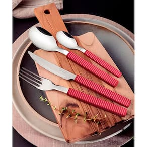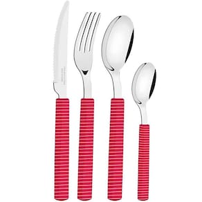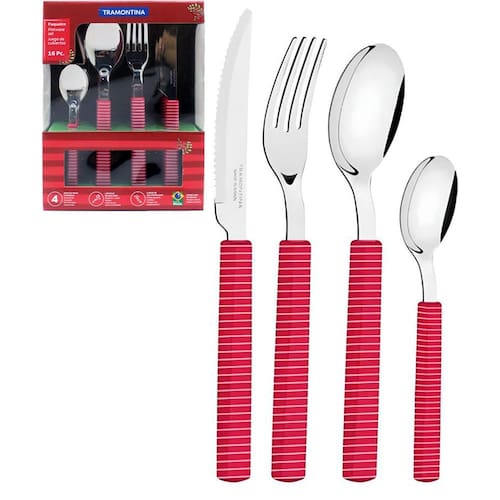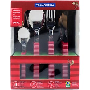 1 Jogo Faqueiro Inox Natalino Vermelho e Branco Com 16 Peças;