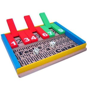 Jogo Feche A Caixa - Planeta BrinquedosComposto por 1 tabuleiro colorido e 2 dados de madeira.As jogadas são rápidas e à medida que os dados rolam, as casas numeradas se fecham e as apostas se sucedem.Desde o século XVIII este jogo tem sido jogado na França, depois atravessou os mares e se tornou popular em diversos países.Jogadas rápidas de sorte e raciocínio.Jogadores: Acima de 1 participante.Desenvolve a habilidade de planejamento, raciocínio lógico, concentração e convívio social.Combine aprendizagem com diversão.Excelente acabamento.Devido a origem do produto ser artesanal podem ocorrer variações nas cores de acordo com o estoque do produto. Excelente acabamento.Idade: a partir de 7 anos. Certificação Inmetro: CE-BRI/ICEPEX-N 00174-82 NM300/2002.