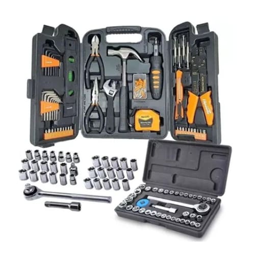 Jogo de Ferramentas com 129 Peças é projetado especialmente para automobilistas e centros de manutenção de veículos. As peças são produzidas de acordo com padrões internacionais. As ferramentas são feitas de aço, oferecendo durabilidade e resistência.