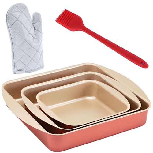01 Assadeira N1 01 Assadeira N2 01 Assadeira N3 01 Pincel Culinário de Silicone 01 Luva Térmica de Cozinha