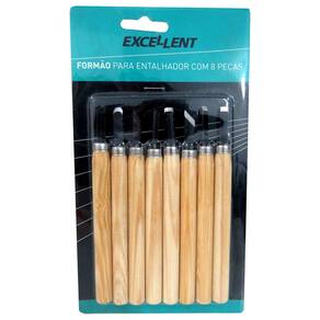 Jogo de Formão para Entalhador com 8 Peças, para trabalhos em madeira que requer precisão em peças delicadas.