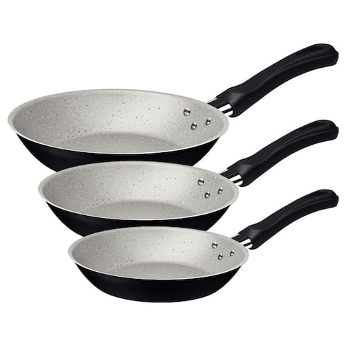 Descubra o prazer de cozinhar e criar receitas incríveis, com o jogo de frigideiras Tramontina Caribe em alumínio com revestimento interno e externo antiaderente Starflon Max preto 03 peças. Produzidas em alumínio com revestimento antiaderente Starflon Max, suas frigideiras cozinham os alimentos de maneira rápida e uniforme, sem que eles grudem em sua superficie. Seus cabos são em baquelite antitérmico e proporcionam um manuseio muito confortável e seguro, pois reduzem a propagaçaõ de calor. Além de todos estes atributos incríveis, as frigideiras são muito fáceis de limpar e podem ser lavadas na máquina de lavar louças, otimizando seu dia a dia na cozinha. Sem dúvida, a escolha perfeita para levar alta qualidade e beleza para sua cozinha, garantindo um preparo das suas refeições muito mais prático Corpo de alumínio com espessura que proporciona cozimento rápido e uniforme. Revestimento interno e externo de antiaderente Starflon Max que não gruda, é fácil de limpar, mais durável e não é prejudicial à saúde, pois é livre de PFOA. Cabo de baquelite antitérmico que oferece segurança durante o manuseio. Pode ir à máquina de lavar louças facilitando seu dia a dia. Pode ser utilizada nos fogões: gás, elétrico e vitrocerâmico - resistência elétrica. Jogo de Figideira Alumínio 3 Peças Caribe Tramontina Starfon MAX Conteúdo: 1 Frigideira 16cm - 0,4L 1 Frigideira 20cm - 0,8L 1 Frigideria 24cm - 1,4L Ean: 7891112333123