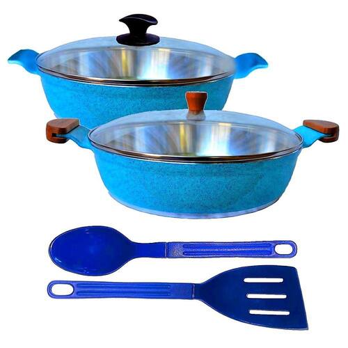 01 Frigideira Antiaderente Usinado Javali Azul Turquesa Alça de Madeira 30cm.