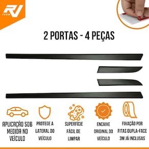 Especificação Técnica: - Contém 4 peças, portas dianteiras e traseiras - Fácil instalação por fita dupla face 3M - Proteção contra arranhões e amassados - Mesma cor do carro - Fabricado em plástico ABS resistente - Cód: 1406AC-PTO-I - Marca: Grid - Cor: Preto