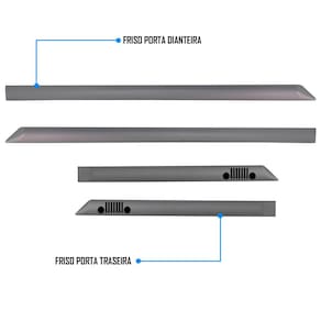 O Friso Lateral é produzido em Polipropileno (PP) e segue os padrões mais exigentes de qualidade. Sua pintura é resistente e não desbota ou sai com o tempo. O Friso Lateral deixará seu carro muito mais bonito e atraente. Protege as portas contra pequenos acidentes e arranhões. Kit composto por 4 peças.