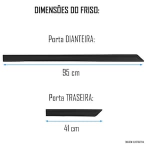 Descrição: O friso lateral é produzido em polipropileno de alta qualidade na cor do carro, e segue os padrões mais exigentes de qualidade. Sua pintura é resistente e não desbota ou sai com o tempo. O friso lateral deixará seu carro muito mais bonito e atraente. Protege as portas contra pequenos acidentes e arranhões. Kit composto por 4 peças. Friso com ótima qualidade de acabamento e pintura de acordo com o padrão das concessionárias. Medidas aproximadas dos frisos: - largura: 5 cm - porta dianteira: 95 cm - porta traseira: 41 cm 1 ano de Compatível com: - fastback 2022 - fastback 2023 Além de deixar seu carro com aspecto mais esportivo e moderno, o friso protege a lateral do seu veículo contra pequenos arranhões e amassos Disponível nas cores: - azul amalfi - branco alaska - branco banchisa - cinza silverstone - cinza strato - prata bari - preto vulcano - vermelho monte carlo