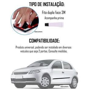 Descrição:O friso lateral é produzido em polipropileno pp de alta qualidade na cor preto, e segue os padrões mais exigentes de qualidade. Sua pintura é resistente e não desbota ou sai com o tempo. O friso lateral deixará seu carro muito mais bonito e atraente. Protege as portas contra pequenos acidentes e arranhões. Kit composto por 4 peças.Friso com ótima qualidade de acabamento e pintura.Produto universal para carros 2 portas.Medidas aproximadas dos frisos:- largura: 5 cm- porta dianteira: 106 cm- porta traseira: 40 cm1 ano de garantiaAlém de deixar seu carro com aspecto mais esportivo e moderno, o friso protege a lateral do seu veículo contra pequenos arranhões e amassosDisponível somente na cor:- preto.Possíveis carros compatíveis:- gol- palio- fox- strada- corsa- parati- uno- celta- ka- clio- astra- fiesta- peugeot 206- peugeot 207