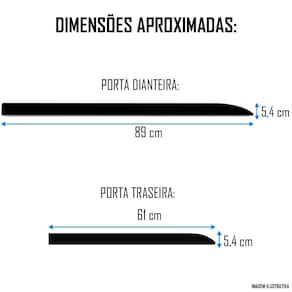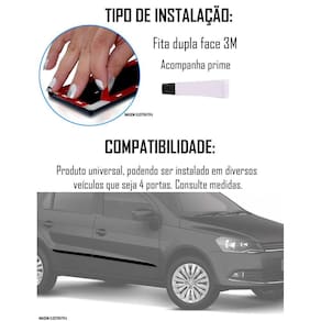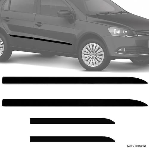 Descrição: O friso lateral é produzido em polipropileno pp de alta qualidade na cor preto, e segue os padrões mais exigentes de qualidade. Sua pintura é resistente e não desbota ou sai com o tempo. O friso lateral deixará seu carro muito mais bonito e atraente. Protege as portas contra pequenos acidentes e arranhões. Kit composto por 4 peças. Friso com ótima qualidade de acabamento e pintura. Produto universal para carros 4 portas. Medidas aproximadas dos frisos: - largura: 5 cm - porta dianteira: 89 cm - porta traseira: 61 cm 1 ano de Além de deixar seu carro com aspecto mais esportivo e moderno, o friso protege a lateral do seu veículo contra pequenos arranhões e amassos Disponível somente na cor: - preto. Possíveis carros compatíveis: - gol - voyage - up - polo - virtus - jetta - t-cross - taos - passat - polo - corolla - yaris - etios - onix - cruze - cobalt - corsa - celta - astra - agile - meriva - vectra - zafira - hb20 - creta - tucson - march - kicks - sentra - palio - punto - argo - uno - cronos - captur - sandero - logan - duster - renegade - compass - focus - ecosport - fiesta - novo ka