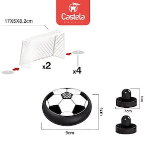 Leve a emoção do campo para dentro de casa com o air power kit futebol de mesa castela com este jogo interativo, crianças e adultos podem aproveitar uma partida divertida em qualquer lugar. O disco flutua sobre a superfície usando ar comprimido, permitindo um movimento suave e rápido, como em uma partida real a tecnologia de air power cria um efeito de flutuação, deslizando sem esforço pelo campo.