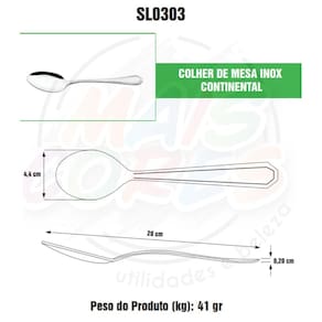 12 Colheres de Mesa 4,4x20cm Espessura do cabo 2mm, peso por peca 0,041Kg.