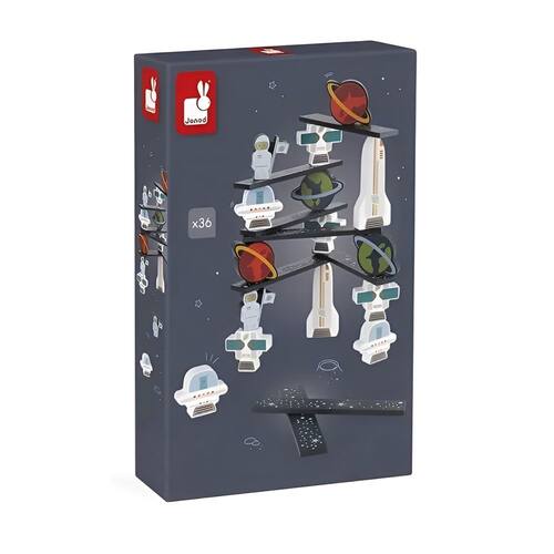 Prepare-se para uma aventura fora deste mundo com o Jogo Equilíbrio no Espaço! Com 36 peças coloridas em madeira (5 astronautas, 5 satélites, 4 foguetes, 5 planetas, 5 OVNIs e 12 pranchas antigravidade), o objetivo é simples mas desafiador, empilhar as peças o mais alto possível sem deixar nada cair!