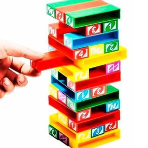 Quanto mais a torre aumenta, mais divertida a brincadeira fica, perde o jogo quem deixar a torre cair primeiro. Homologação Inmetro: CE-BRI/ICEPEX-N 01264-25-47