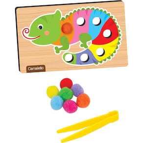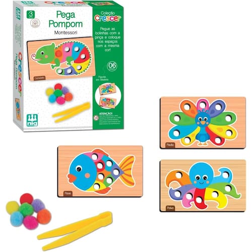 Com a coleção Crescer da Nig Brinquedos, a brincadeira ficará ainda mais divertida, as peças são fabricadas com madeiras de alta qualidade, garantindo durabilidade e resistência na hora da diversão. As crianças amam os pompons, coloridos e macios para brincar! Para brincar basta que a criança pegue as bolinhas com a pinça e coloque nos espaços com a mesma cor! Essa atividade vai desenvolver a coordenação motora fina, facilitando a prática de tarefas como a escrita e outras que necessitem de firmeza e direção dos movimentos. Preenchendo as ilustrações, a criança terá a noção de discriminação das cores, nomeações, percepção de ordem, além de trabalhar sua concentração.