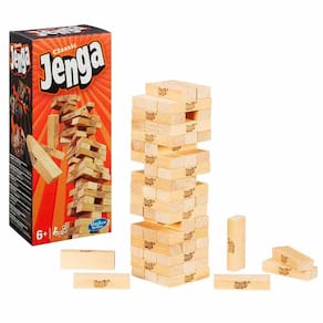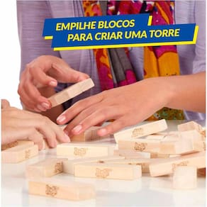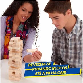 Jogo Infantil - Torre de Equilíbrio - Jenga Clássico - Hasbro Gaming: um jogo de estratégia e movimentos precisos! Escolha bem o bloco e seja preciso em seus movimentos. Passando os blocos da base para o topo, mostre que você é habilidoso, tomando cuidado para não derrubar a torre! Vence quem for o último jogador a conseguir mover um bloco da torre sem deixá-la cair. Vem com 54 blocos de madeira e acessório para ajudar na montagem da torre. Como jogar Jenga Classic? 1 - Monte a torre. Coloque três blocos por nível, alternando o posicionamento dos blocos. Se for necessário utilize o suporte de montagem 2 - Com uma mão apenas, retire um bloco de qualquer local da torre situado abaixo do nível completo mais elevado. Pode tocar nos blocos para ver quais os que estão soltos 3 - Coloque o bloco no topo da torre. Espere cerca de 10 segundos. • Se a torre cair, está fora do jogo. • Se a torre aguentar de pé, passe a vez ao próximo jogador 4 - Tente ser o último jogador a colocar um bloco sem provocar a queda da torre! Obs: Se jogar sozinho, tente bater o seu recorde de torre mais alta Quem é o vencedor? • Ser o último jogador a colocar um bloco sem causar a queda da torre! Informações: • Produto: Jogo Jenga Classic • Marca: Hasbro Gaming • Coleção: Jenga • Tipo: Jogo de Equilíbrio de madeira • Categoria: Jogos e Tabuleiros • Subcategoria: Jogo Infantil • Objetivo: Ser o último jogador a colocar um bloco sem causar a queda da torre! • Participantes: de 01 ou mais jogadores • Conteúdo: - 54 Blocos Jenga de madeira - 01 Suporte de montagem • Recomendação: para crianças a partir de 06 anos de idade Especificações: • Referência: A2120 • Código de Barras: 653569833994 • Embalagem (C x A x L): 12 x 28 x 08 cm • Embalagem (Peso): 0.991 kg • Composição / Material: Madeira • Registro: 005153/2021 • Certificado: Órgãos Autorizados - OCP´S (Organismos de Certificação de Produtos) Aviso: • As imagens são meramente ilustrativas • Os pesos, tamanhos e medidas são aproximados • As cores e estampas dos produtos podem ter variações • As informações são de responsabilidade do fabricante ou fornecedor Ean: 653569833994