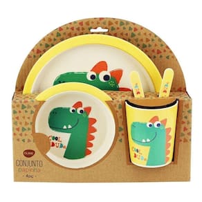 Kit Refeição Infantil - Prato Raso, Prato Fundo, Copo, Colher e GarfoO kit é fabricado com a mistura de plástico e resina de fibra da palha do trigo, sendo um composto orgânico que se decompõe mais facilmente na natureza, contribuindo assim para redução do lixo e da poluição do solo, das águas e do ar.Características- Material: Plástico e Resina de Fibra da Palha do Trigo- Não pode ir ao freezer- Não pode ir na lava-louçasObservação- Lave apenas com água, esponja macia e detergente neutro. Evite produtos abrasivos.- Evite contato com superfícies quentes.Especificações / Medidas do Produto- Copo: 7,5 cm (Diâmetro) x 9 cm (Altura) / Capacidade: 270 ml- Dimensões Garfo : 2,4 cm (Largura) x 13,5 cm (Comprimento)- Dimensões Colher: 3 cm (Largura) x 13,5 cm (Comprimento)- Dimensões Prato Fundo: 4 cm (Altura) x 12,8 cm (Diâmetro Interno) x 15 cm (Diâmetro Externo)- Dimensões Prato Raso: 2 cm (Altura) x 19 cm (Diâmetro Interno) x 21,5 cm (Diâmetro Externo)