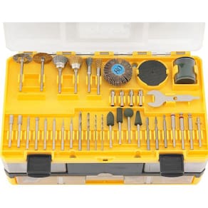 1 Jogo de acessórios para microrretífica, composto por: 1 disco diamantado, 30 lixas cilíndricas, 2 rodas de pano, 12 rodas de feltro, 2 pontas com feltro, 1 roda de borracha, 4 limas rotativas, 2 hastes para lixas cilíndricas, 11 limas rotativas diamantadas, 3 pontas montadas de óxido de alumínio, 6 rebolos de óxido de alumínio, 3 pontas montadas de carbureto de silício, 6 rebolos de carbureto de silício, 3 escovas de inox, 3 escovas de latão, 1 pasta para polimento, 108 discos de corte, 135 discos de lixa, 4 pinças para microrretífica, 1 haste para discos de corte, 1 haste para discos de borracha, 1 haste para discos de lixa, 1 haste para discos de feltro, 2 discos de corte de fibra de vidro, 1 chave para microrretífica, 1 roda de lixa grão 80 , 1 bastão abrasivo e 4 pontas montadas de borracha